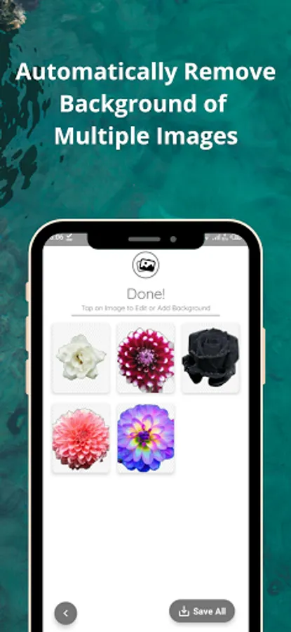 - If you would like to save the Images with transparent background, tap on “Save All” button as soon as all the images got transparent background. All the images with background removed will be saved in your device’s photo gallery by bg remover.