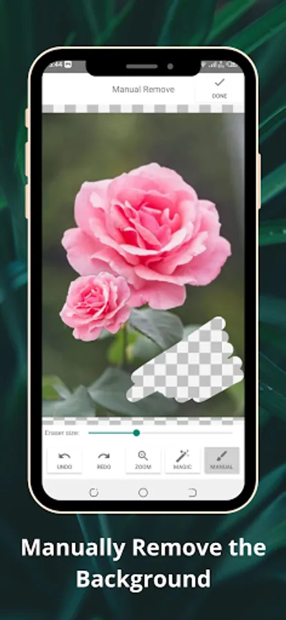 - You can also custom Remove Background from photos using “Eraser” and “Magic” tool in background changer. Adjust the size of Eraser accordingly. If you made a mistake while manually removing the background, use “Undo” feature to undo the changes you just made.