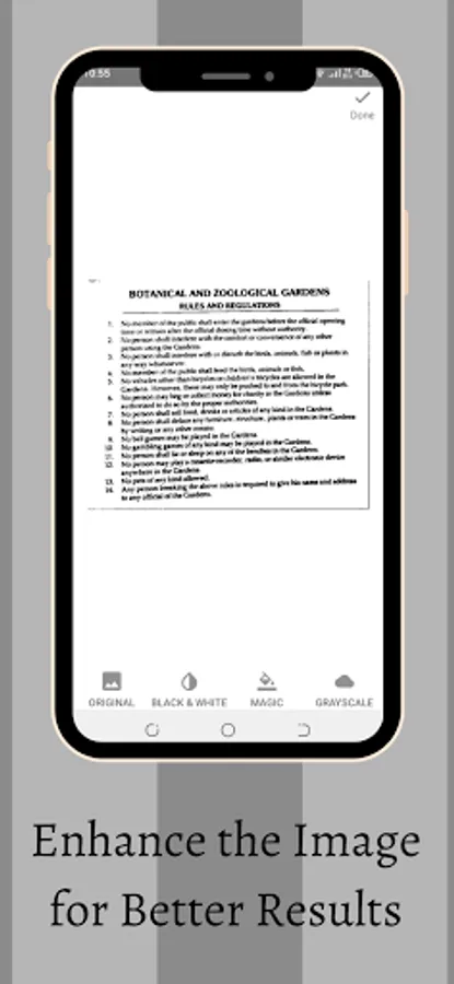 - Edit the Selected/Captured images. You can Crop, Rotate, and Straighten the Images after tapping on the images and opening in editor. Straightened Images can also be shared to other apps as well as with friends, family and colleagues. Images can also be enhanced in “Black & White, Magic, and Grayscale” mode to achieve better results.