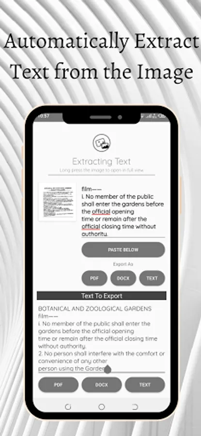 - After text is extracted, long-press the Image to compare Extracted text with the selected image.