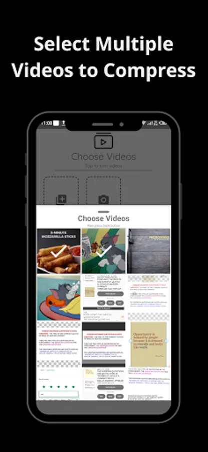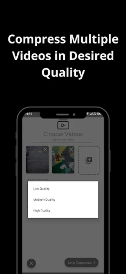 After selecting or recording multiple videos to resize, tap “Let’s Compress” to start automatic compression of videos.