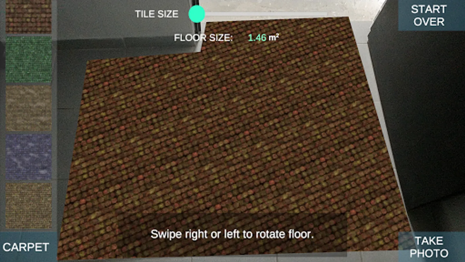 Are thinking about changing the flooring in your home? Wouldn’t it be great if you could see what the new flooring would look like and try out some options before it is actually installed? Now you can! With AR Home Flooring you can place carpet, tile or wood flooring onto your floor in real time. It is as easy as helping the phone identify the floor, mark the areas you want to change and then select from our different flooring options. Install AR Home Flooring now to get started today!