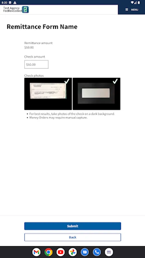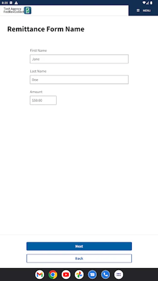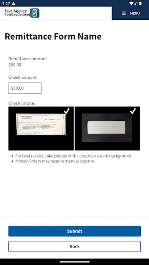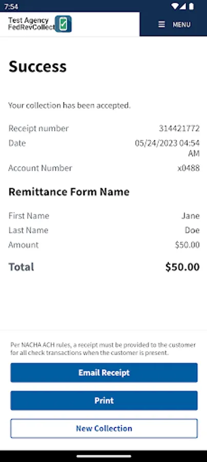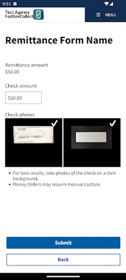 FedRevCollect supports Fingerprint ID (on supported devices) for easy sign-in. Approved users provide remittance information and submit a payment. It’s that simple!