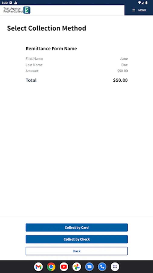 With the FedRevCollect app from the Bureau of the Fiscal Service, government employees can now simply and securely collect payments anytime, anywhere using a mobile device. FedRevCollect accepts both check and credit card payments from customers