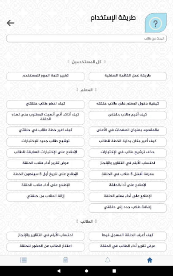 Krammh application serves the association’s management of teachers and students in educational centers and students in managing their educational affairs from evaluation and curriculum of the Noble Quran and enables the association to dispense with paperwork and the quality of educational work.