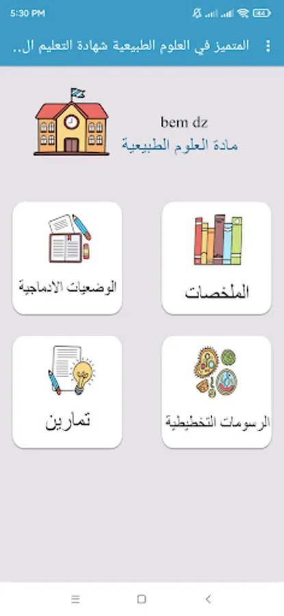 This application represents an important addition to the student's preparations bag in order to pass the natural sciences exam in the baccalaureate, as it contains comprehensive lessons in addition to exercises with the solution and schematic drawings for all lessons and a set of scientific texts to facilitate the student preparing for the baccalaureate exam and good luck to all examinees.