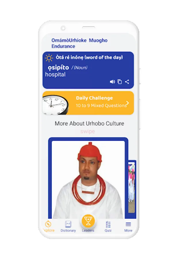 The Urhobo Dictionary App solves the problem by focusing on creating content on the key pillars of learning a language: learning, reading, writing, and speaking the Urhobo language with fun and excitement, from the comfort of users’ homes.
