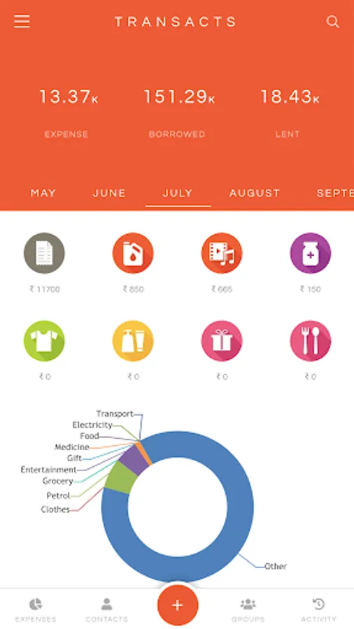 8. Reports: watch your spending distribution on the informative chart or get, view your transactions grouped by categories.