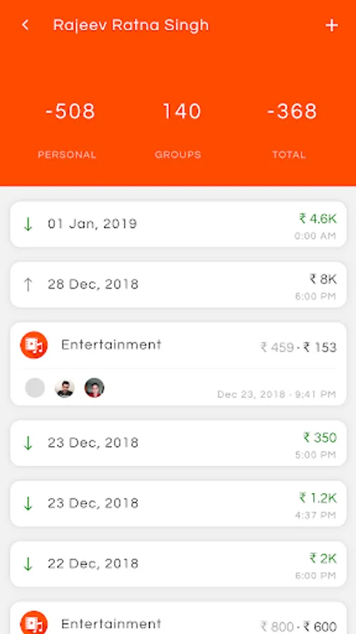 + Ms Alice went for holiday with his friends and paid all the travel expenses but Bob paid rest of the bill. Great! Ensorta Transacts will manage and split the expenses.