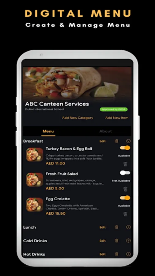 Digital Menu is a unique feature to create your digital menu with items in your canteen & offers end-to-end management with the following: