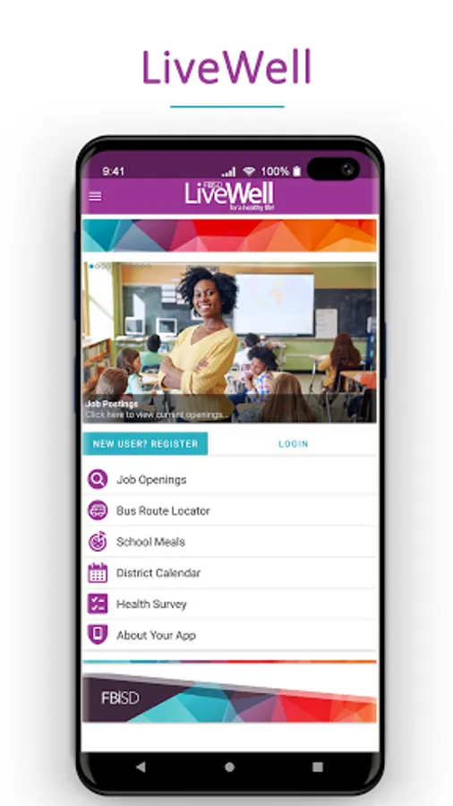 Welcome to your FBISD LiveWell app! In efforts to continuously strive for innovation, Fort Bend ISD offers the FBISD LiveWell app to easily navigate everything you need in one place.