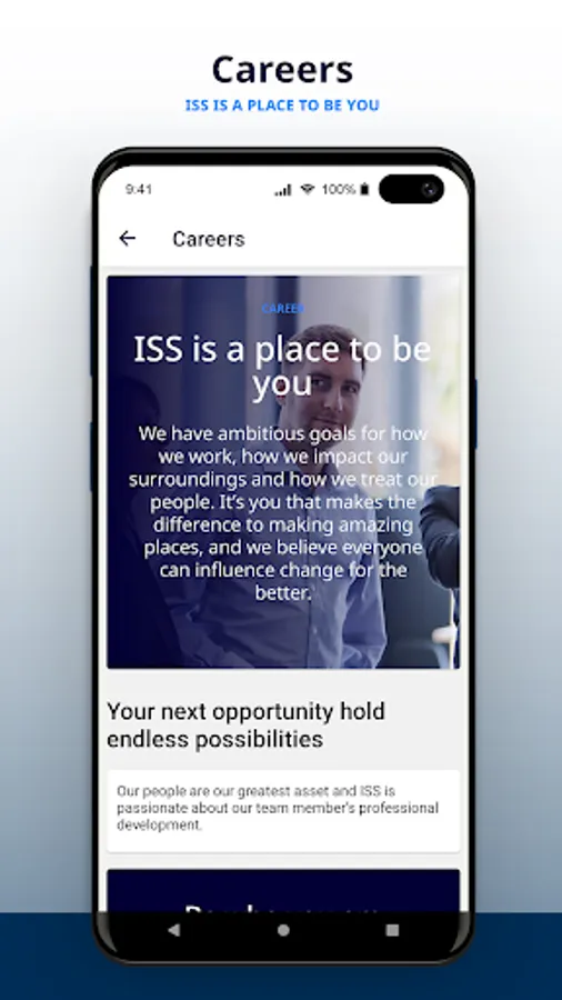 Get all the support you need in our Team ISS app with easy access to career opportunities, insights about our company, detailed investor information, the multitude of services we offer, and more.
