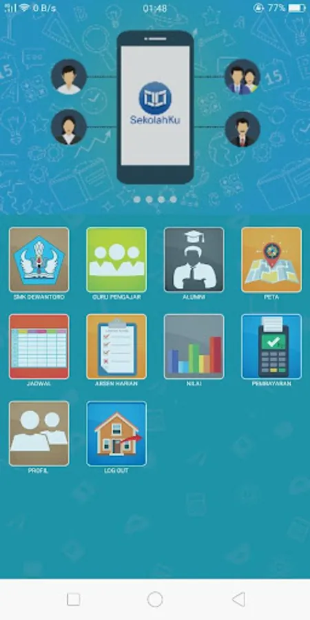 Login wali murid, Wali murid dapat mengontrol hasil belajar siswa, mengontrol absensi siswa, kontrol lokasi siswa, kontrol status bayaran siswa.