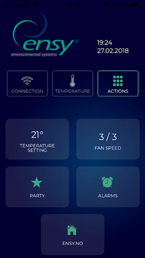 Ensy app allows users to remote control their AHU's and set temperature, fans speed or party mode on the unit. Or read the temperatures that are at the location of the unit.