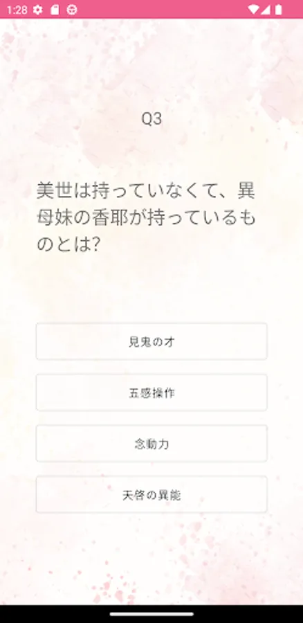 This is a fan quiz app for the popular manga "My Happy Marriage". Questions related to characters and stories will be asked.