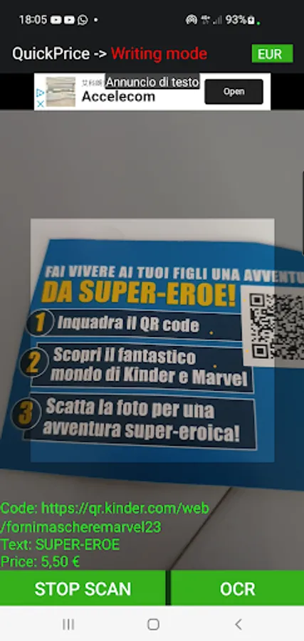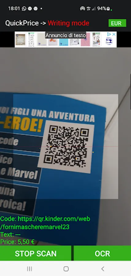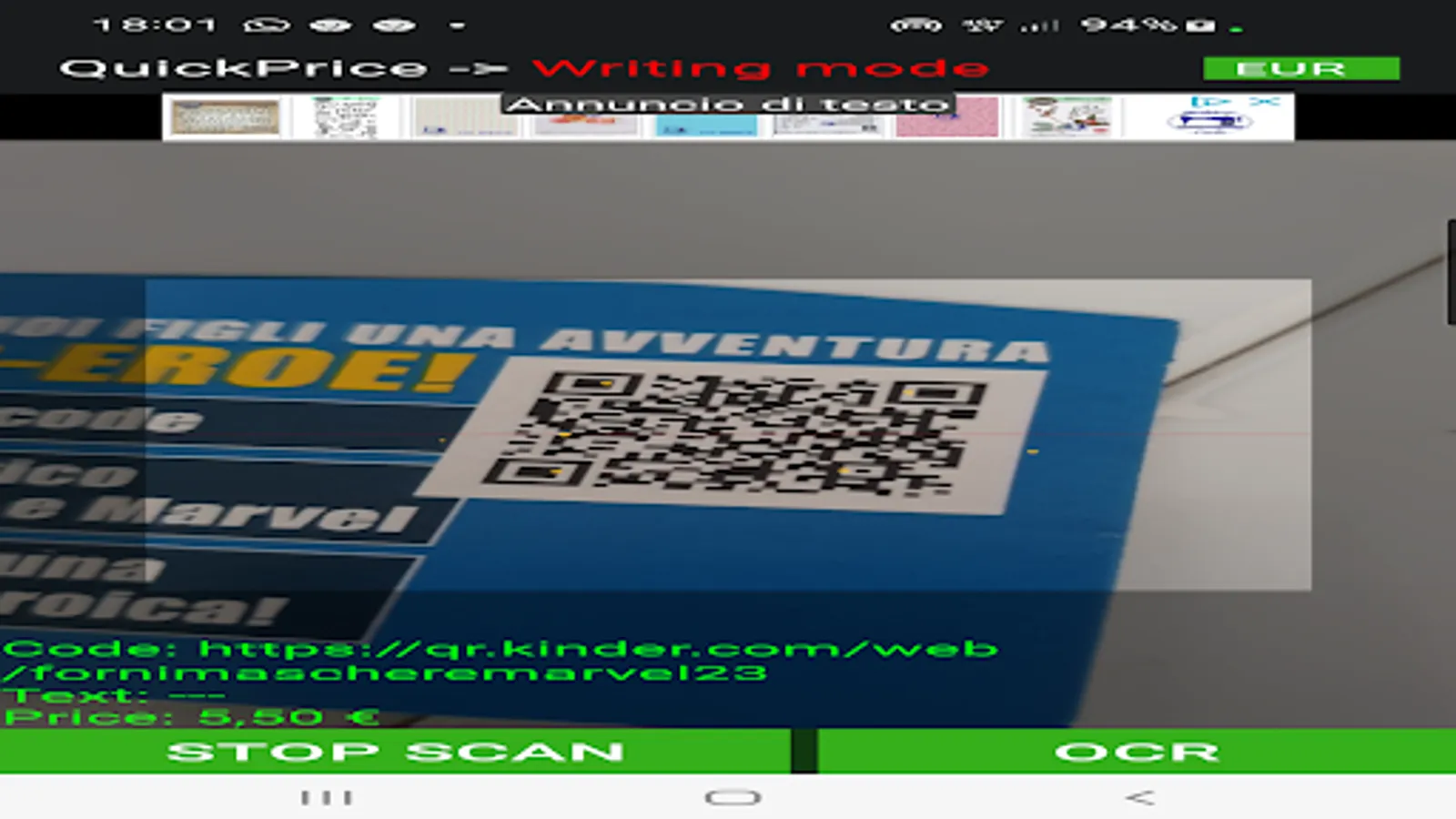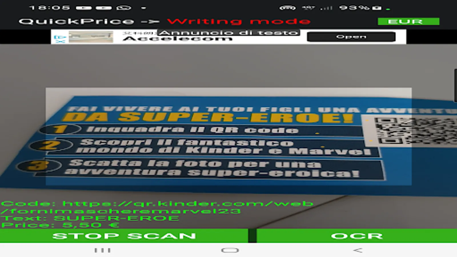 Discover the power of instant barcode and QR code scanning with QuickPrice! Our app is designed to make product tracking a breeze. Whether you're in a store or at home, simply scan any barcode or QR code, and instantly record its price and description. But that's not all! With our state-of-the-art OCR (Optical Character Recognition) feature, you can effortlessly capture product names or descriptions directly from the packaging. No more manual entries or tedious typing. With QuickPrice, you get accurate product details in a flash. Experience the future of product scanning and tracking today!