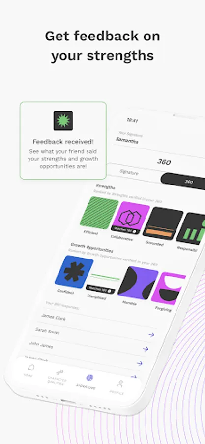 You’ll be able to create a Signature to complement your CV and LinkedIn profile, which will display all your character strengths, endorsements and show how committed you are to self improvement. Your 360 will dynamically shape your Signature to showcase your best qualities to recruiters and employers.