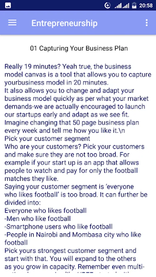 entrepreneurs. Entrepreneurship can be practised both by small business and big business. Entrepreneurship is the main building block in societies, communities and countries at large. Entrepreneurship in small business utilises mainly local resources. Entrepreneurship is inclusive of farmers, teachers, doctors and engineers. Entrepreneurship is an art that needs someone to ready to take risks in implementation. Entrepreneurship is a process which starts when one sports an opportunity(idea), plans and actualize it. Entrepreneurship needs marketing either analogue or digital. Digital marking of entrepreneurship involves the use of social media like Facebook or websites to do marketing. Analogue entrepreneurship marketing involving conferences and one on one training. Who can practise Entrepreneurship? Everyone can practise entrepreneurship. Where can I get Entrepreneurship ideas? Source of Entrepreneurship ideas are internet, journals and friends. Where can I get Entrepreneurship capital? Sources of entrepreneurship capital include bank loans, overdrafts, donors and personal savings.