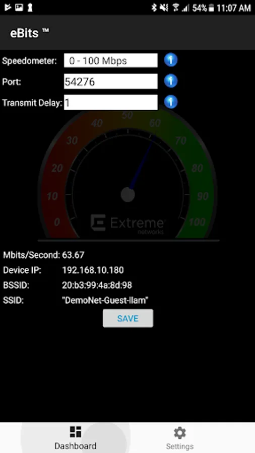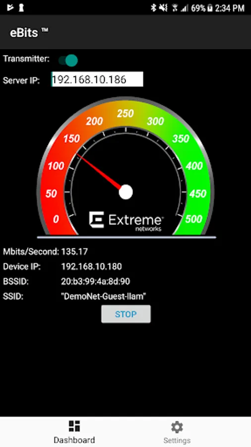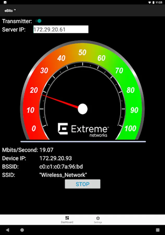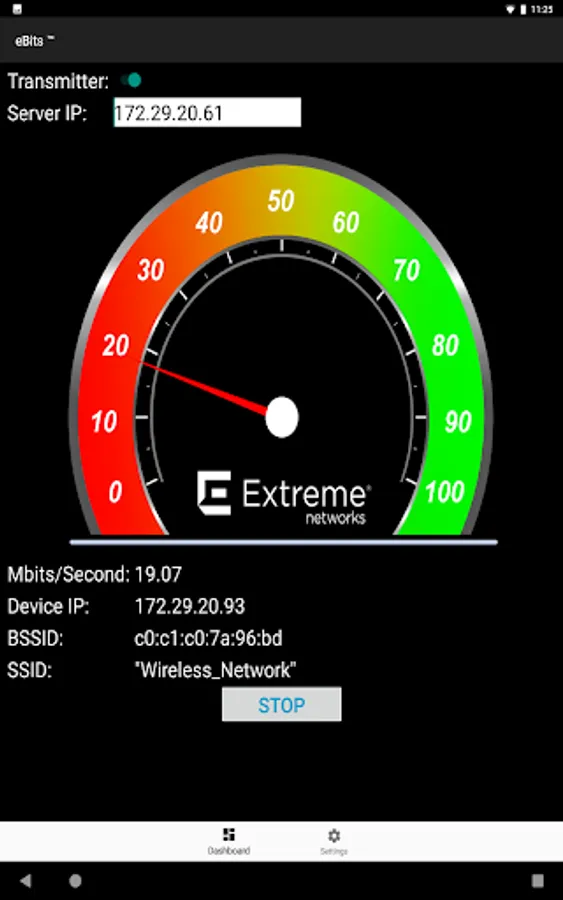 Extreme Bricks Infrastructure Traffic Simulator (eBits) Android application allows users to perform a quick validation of wireless network connectivity. By utilizing two devices running the eBits Android application, users can configure the Transmit / Receive node parameters along with defining the TCP settings on the transmitter in order to establish successful bi-directional communication validation between the two nodes.