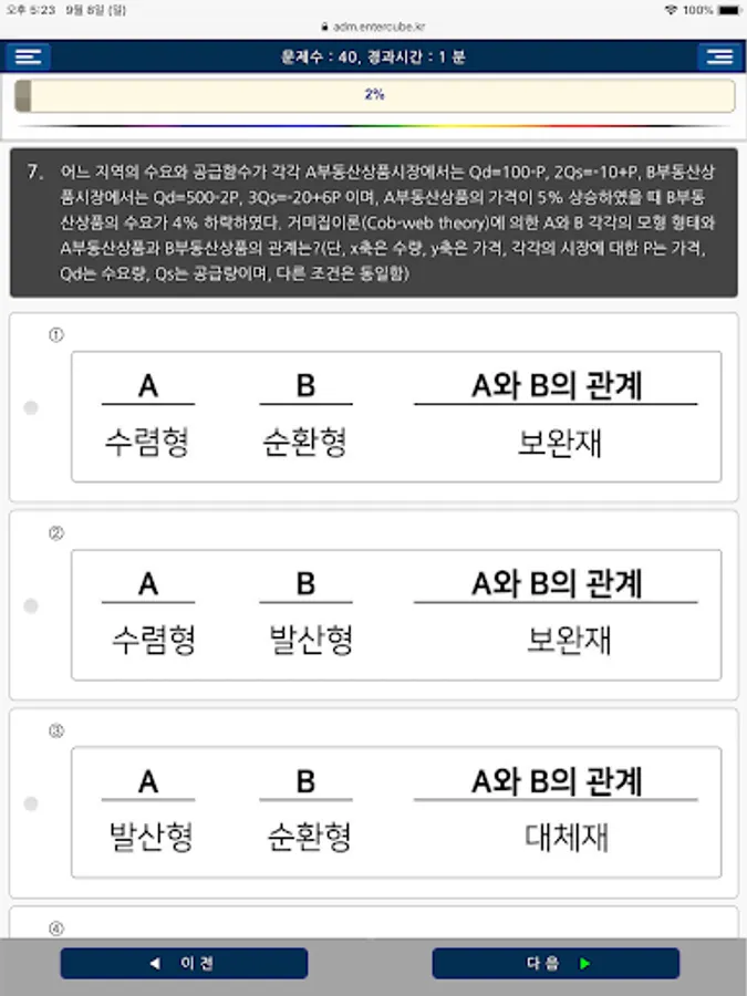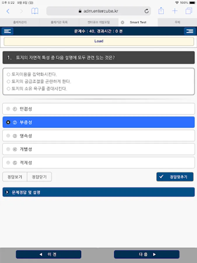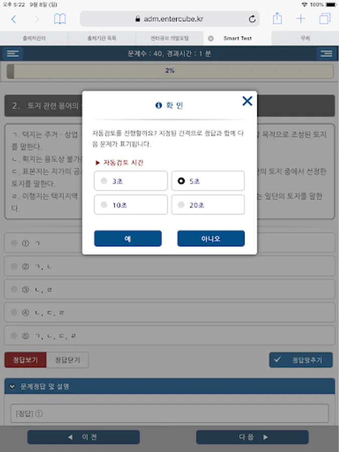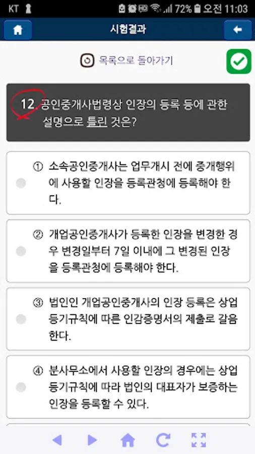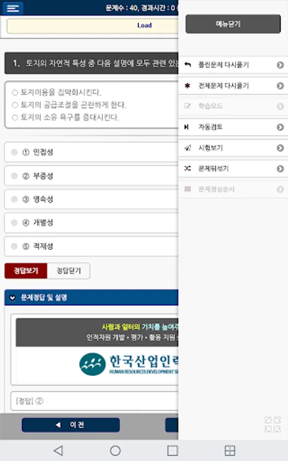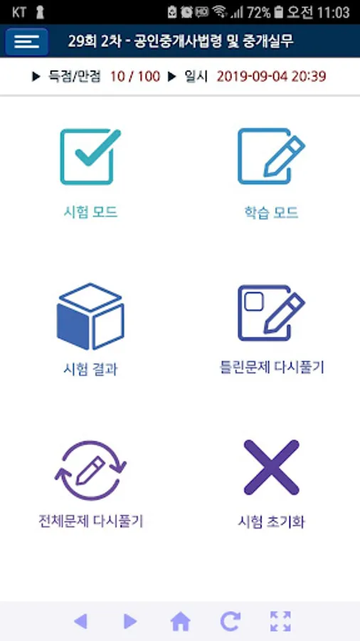 - 오답다시풀기, 전체다시풀기, 시험반복응시 기능을 모두 제공합니다.
