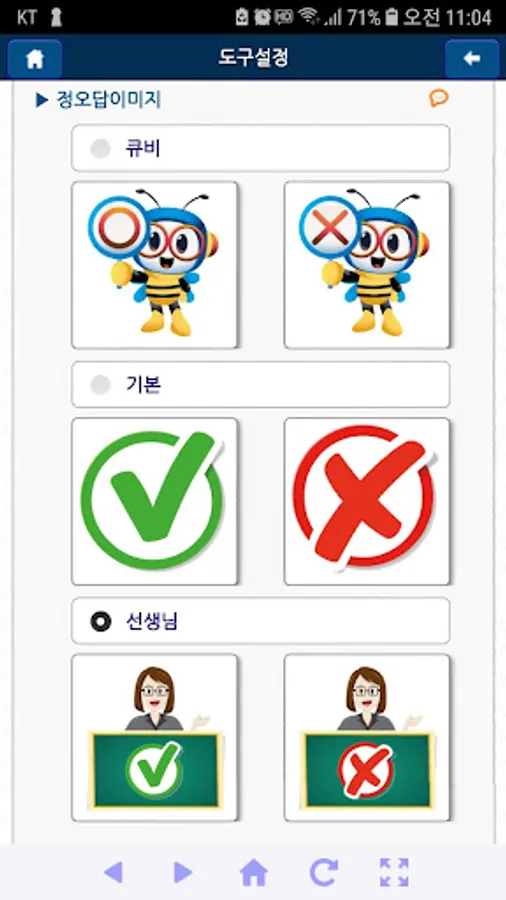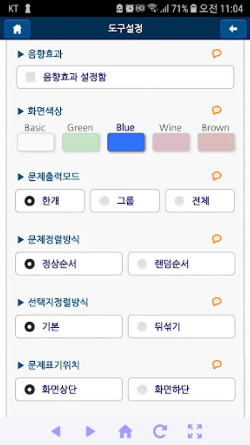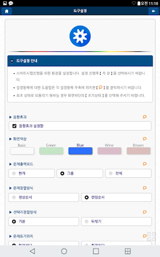 - 화면색상배합, 효과음사용여부 등을 사용자의 취향에 맞게 선택하실 수 있습니다.