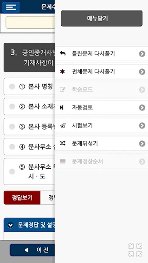 - 문제뒤섞기, 학습풀이, 전체모드 혹은 개별모드 풀이지원!