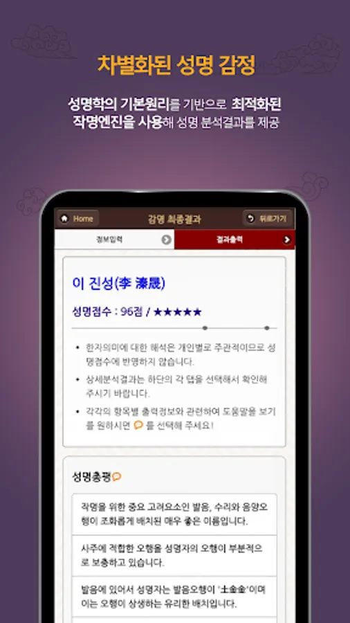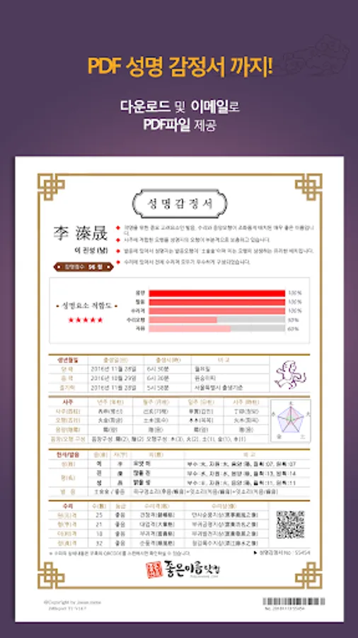 • We use the best naming engine developed through consultation with experts in oriental philosophy, theology, and law.