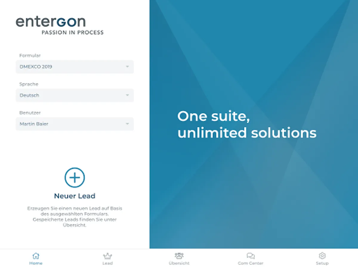 The customizable mobile application allows for efficient, mobile contact data acquisition. As part of the integrated lead management platform from entergon the mobile application entergon enables mobile contact data collection on the iPad.