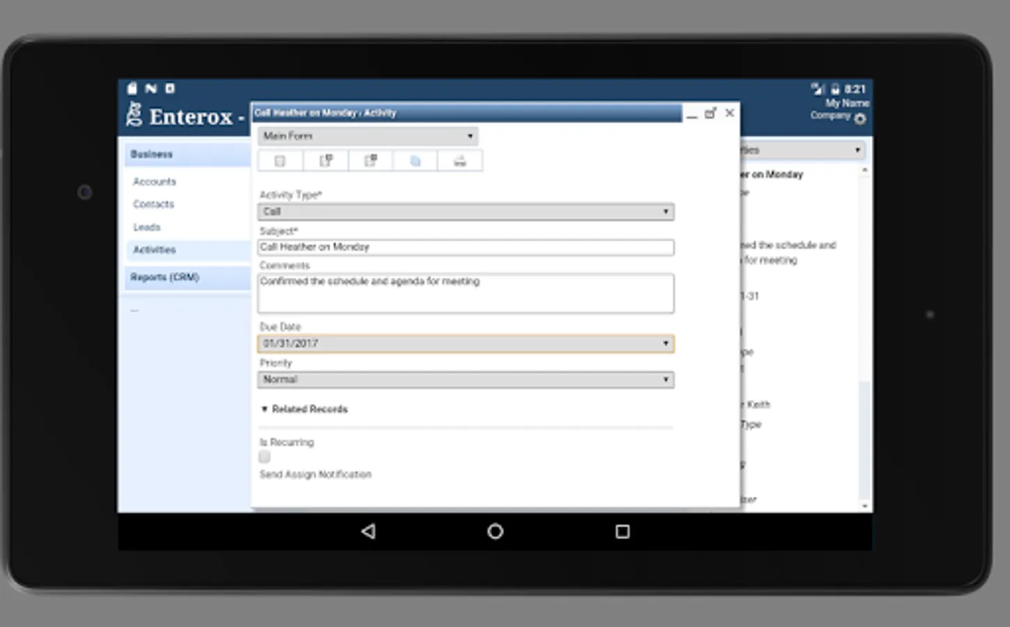 This Business App from Enterox is an easy to use tool for busy professionals who need to engage with customers while staying productive, prepared for every appointment and update notes, tasks, and attachments – along with relevant account and contact records – while at work and also while in move.