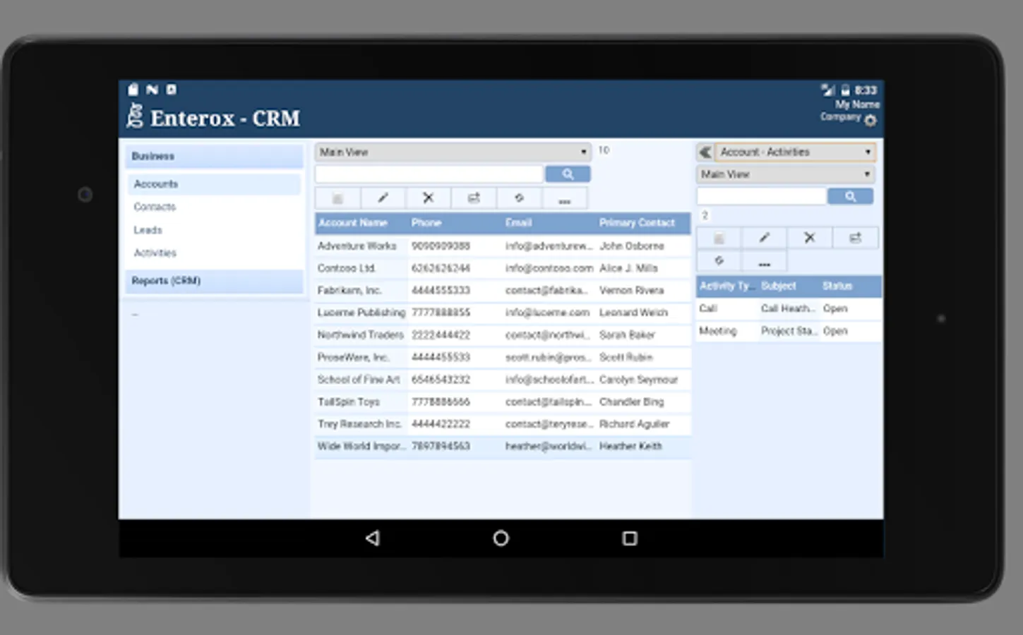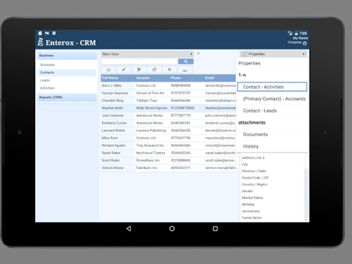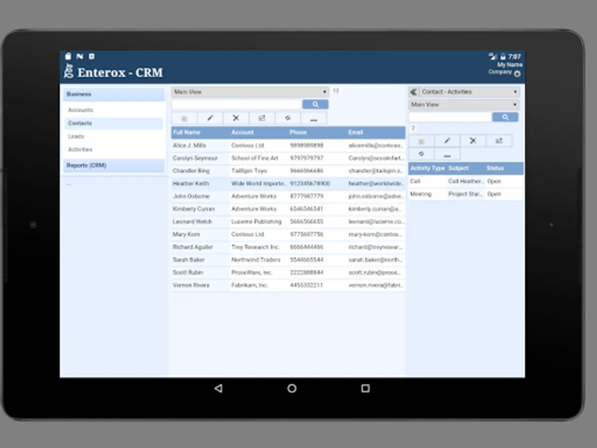 This business app serves as the primary solution for efficient Customer Relationship Management (CRM) by providing ability to manage accounts, contacts and leads along with the activities related to them.