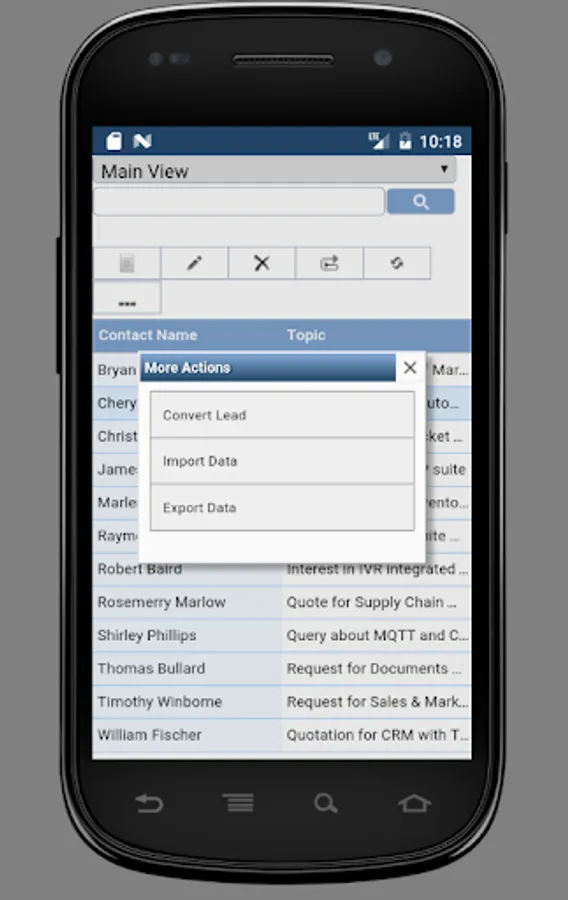 • Simply access your activities, accounts, contacts, and leads from an easy-to-use home screen.