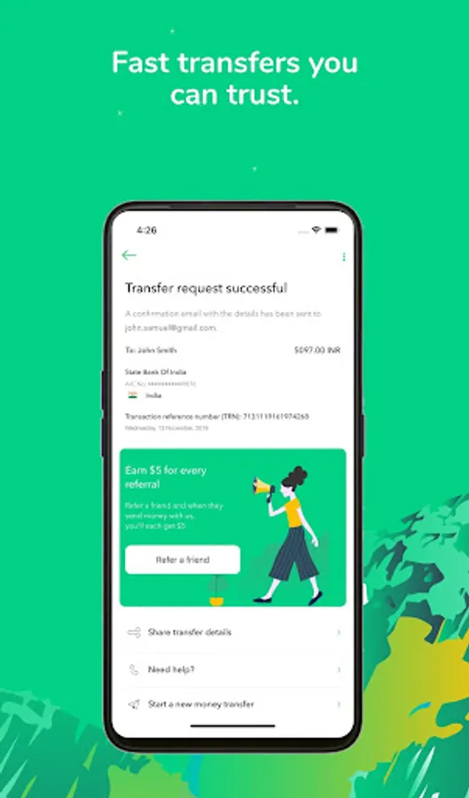 • Status updates by email, SMS and push as your transfer progresses to its destination.