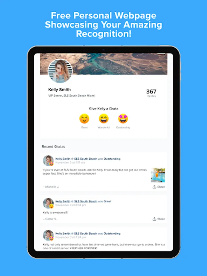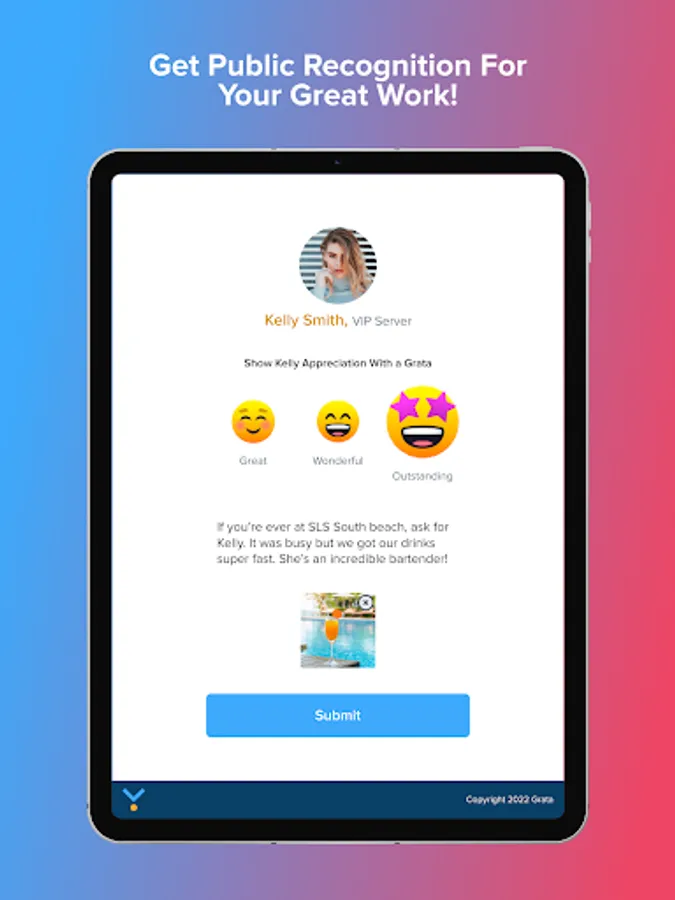 Grata is the only recognition platform designed to connect the community of customers and the terrific employees who serve them. Our Uber exit-like experience is a frictionless way for the hard work and efforts of 80M+ hourly employees to get the recognition and money they deserve. As customers, we get our favorite go-to list of the employees who treat us well so we can always get the service we deserve (not to mention, all the free stuff!). As employers, we finally have qualitative data on our frontline staff to ensure we are developing, rewarding, and serving our customers better.