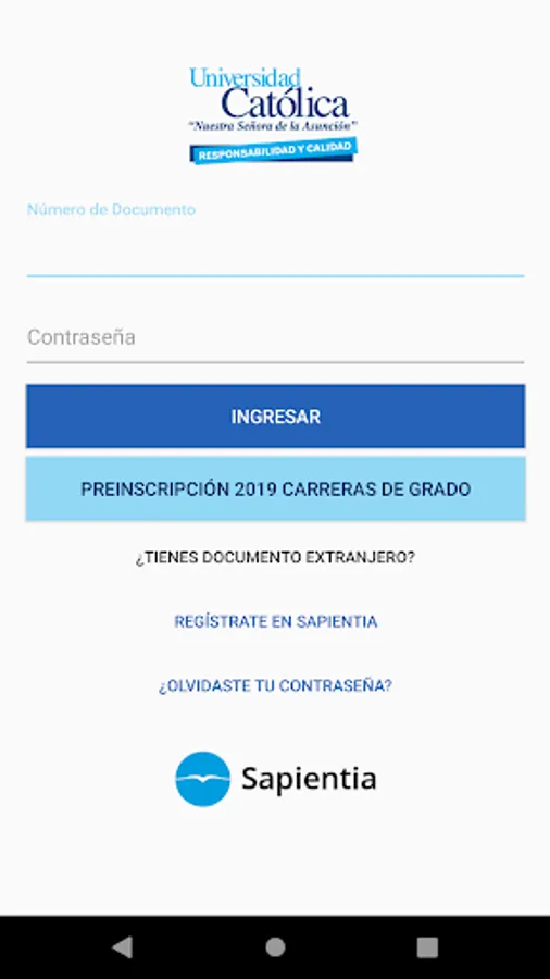 Once you have completed all your data, especially your email, you can register in Sapientia. The registration can be made from the Web System as well as in this application.