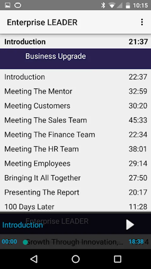 Business Upgrade is the accompanying spokenword audiobook to Enterprise LEADER. In this book in this book you'll be introduced to many of the core ideas explored further in leadership development program. The book is written as a business novel and tells the story of Amroze Technology, a company which has recently fallen on hard times, but with the help of the principles of taught in Enterprise LEADER has turned itself around to become a market leading company once again. Business Upgrade is an optional read, and can be read (listened to) at any time during your Enterprise LEADER experience.