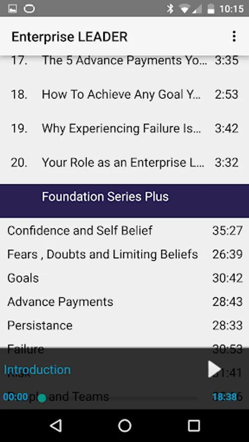 Enterprise LEADER was developed after interviewing scores of highly successful entrepreneurs, CEOs and business leaders. Those interviewed included the founders and CEOs of YO! Sushi, The White Company, Bannatyne Fitness, Cobra Beer, IG Index, Charles Tyrwhitt Shirts, Moshi Monsters, Carpetright, Pizza Express and many more. In the Foundation Series Plus+, you will hear first hand from these business leaders as they speak about the following EIGHT subjects: 1.Confidence and Self Belief 2.Fears, doubts and Limiting Beliefs 3.Goals 4.Advance Payments 5.Persistence 6.Failure 7.Risk 8. People and Teams. Each 30 minute session will reinforce your learning from the main Enterprise LEADER programme and add another dimension to your learning experience.