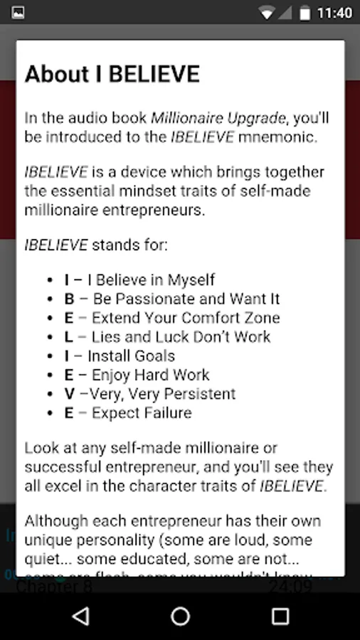 In the audio book you'll be introduced to the entrepreneurial success principles of IBELIEVE, and in the 'quick read' summaries, you can learn exactly how to use IBELIEVE to achieve extraordinary results in your own company.