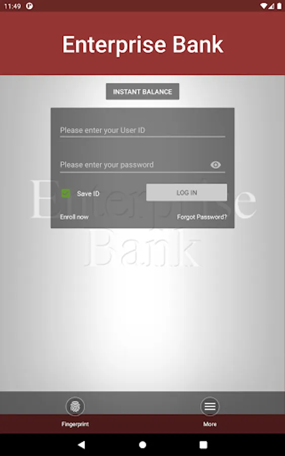The Enterprise Bank Mobile Banking application gives you free, secure, anytime access to your banking account from the convenience of your Android device. You can view and access your money anytime, anywhere.