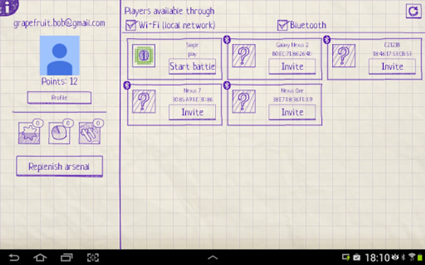 • search for opponents around and the ability to play via Wi-Fi/Bluetooth channels