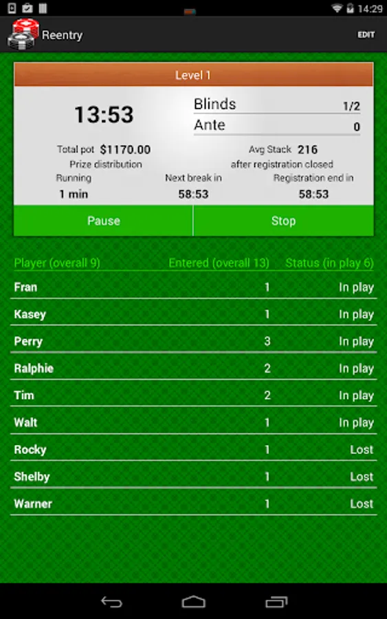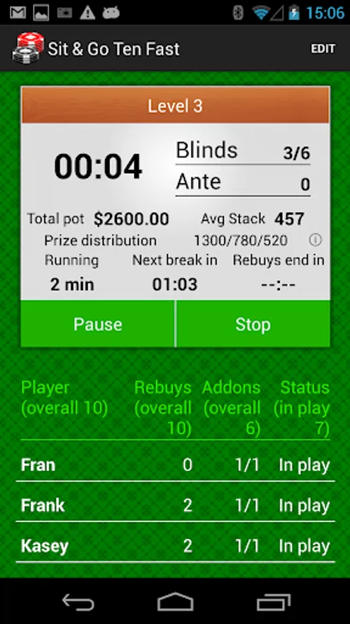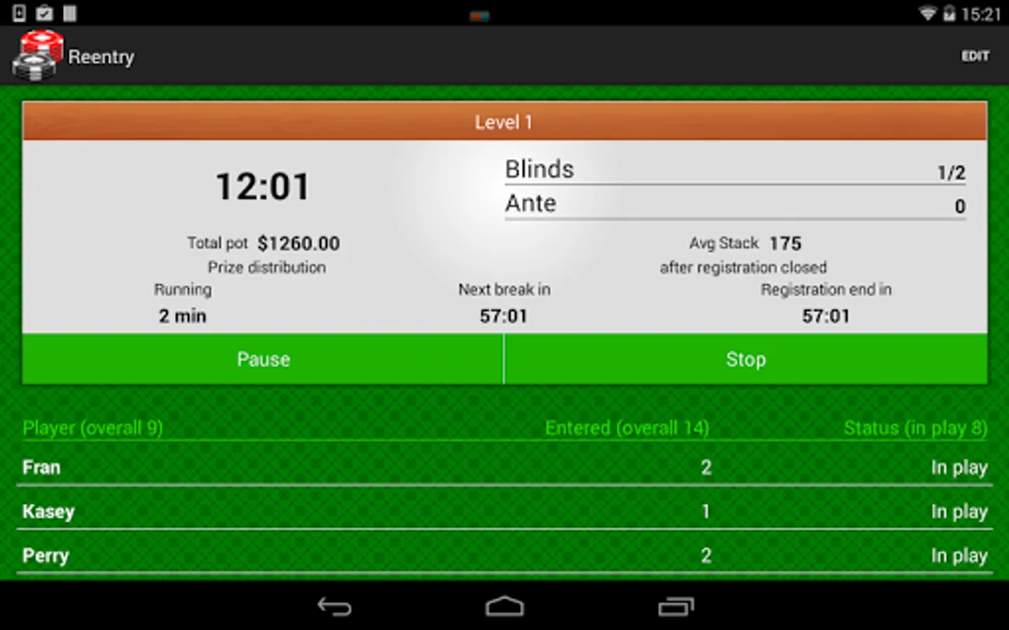 Poker Timer – full-functional free app for your own poker tournaments organization. Simple and friendly interface helps track the game easily and have all the data on hand any moment.