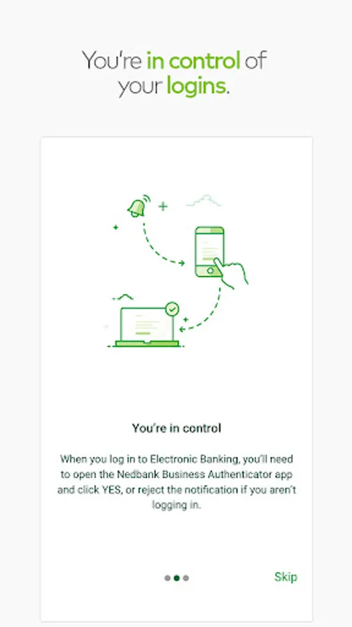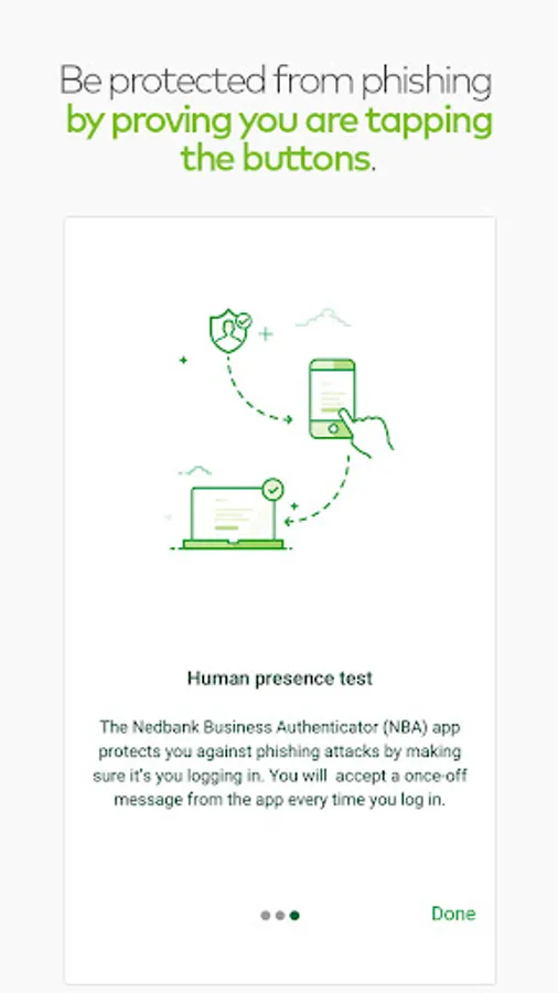 When using your mobile device, your Nedbank Business Authenticator app is uniquely linked to your Nedbank ID, providing you with an additional layer of protection from phishing attacks and other online fraud. The app encrypts all communication between your device and Nedbank.