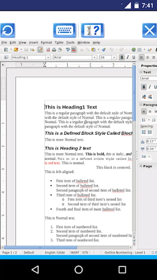 A guide about how to use this app can be found at http://www.offidocs.com. But note that the AndroWriter app has its own instructions when the document is being edited. It has several buttons for the operations: