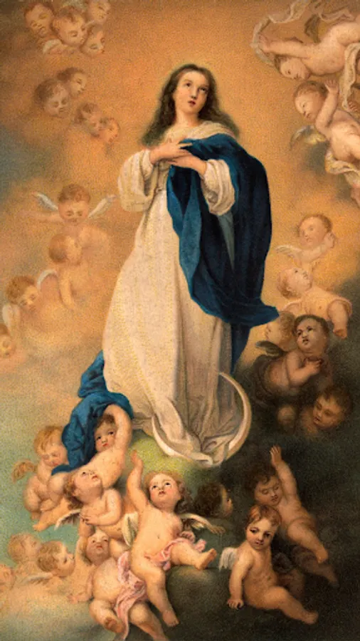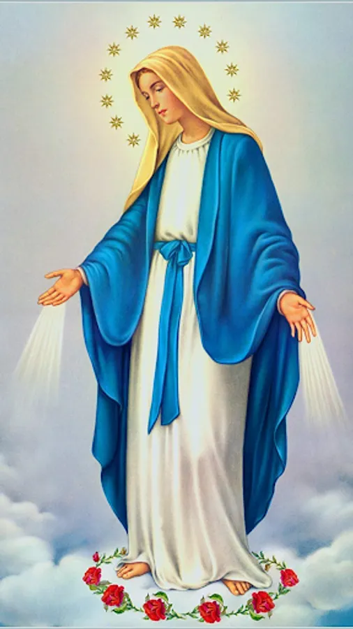 Religious Mary is the name given to the iconic image of the Virgin Mary found on many Christians' walls. Many Christians and non-Christians choose to decorate their rooms with a religious Mary wallpaper. Most people see the appeal in displaying a religious motif on their walls. Some people find that having religious Mary wallpaper helps them maintain their faith. Other people find that it helps them pray and find inspiration. Ultimately, religious Mary wallpapers help people express their beliefs via beautiful imagery.