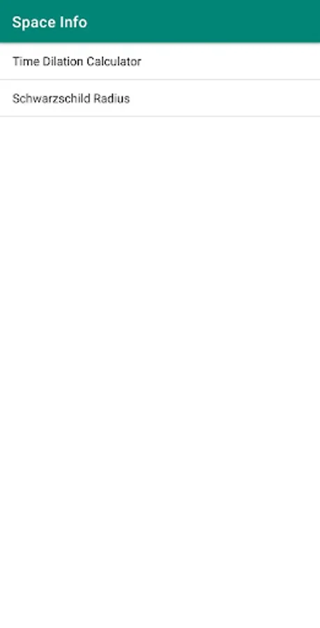 This app contains calculators for calculating various interesting phenomenons like time dilation, black holes etc.