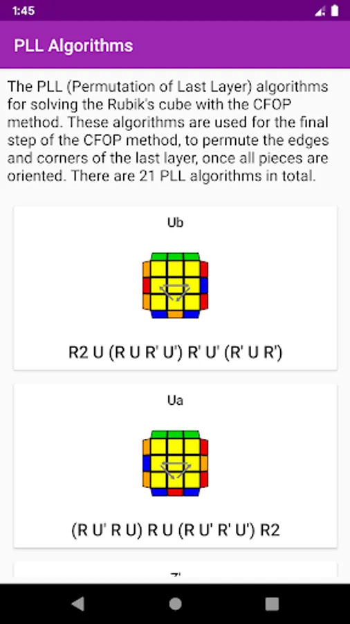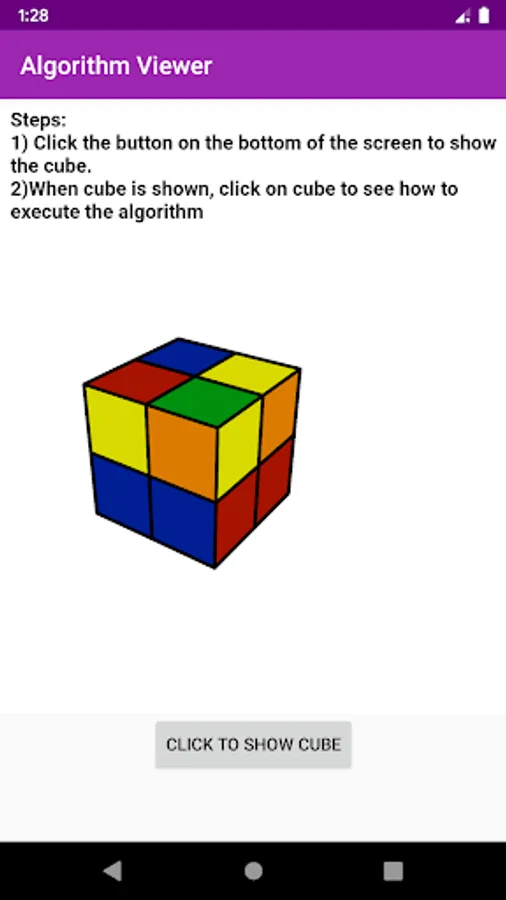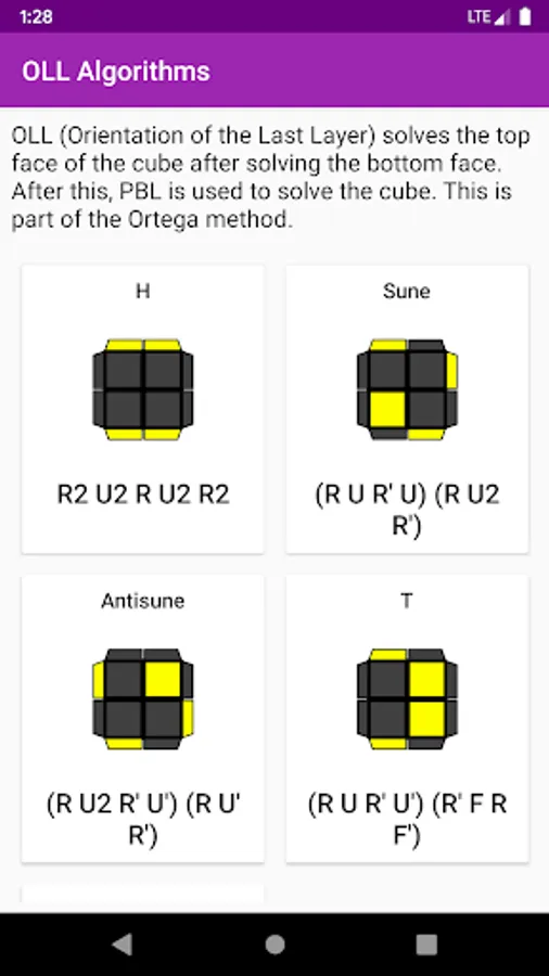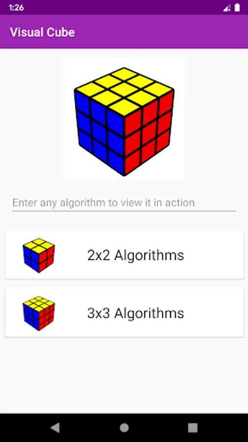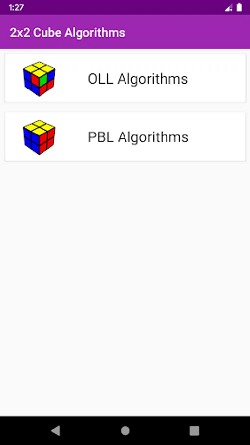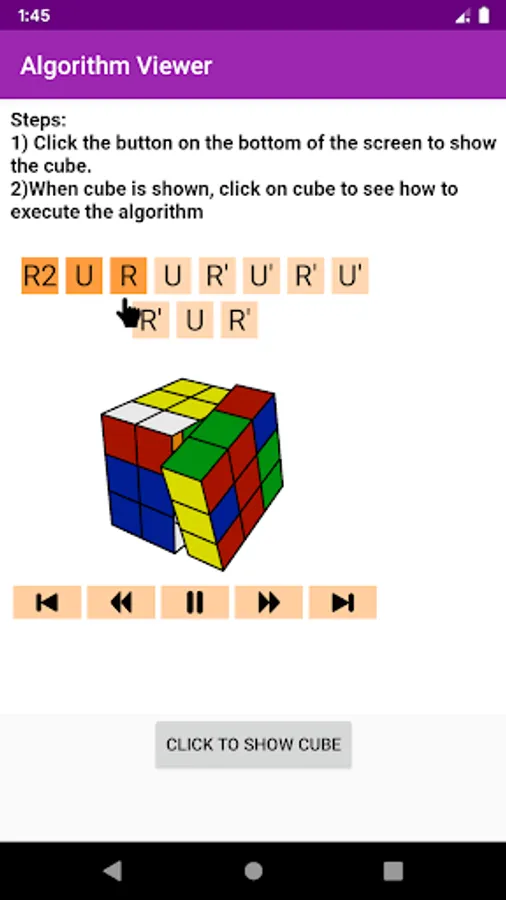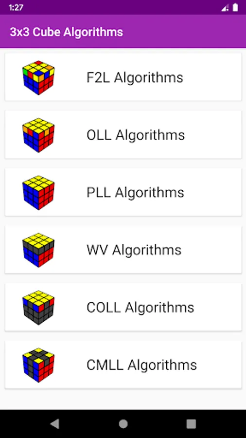 This App shows 3x3 Intermediate Cube algorithms based on CFOP method and 2x2 Ortega method.