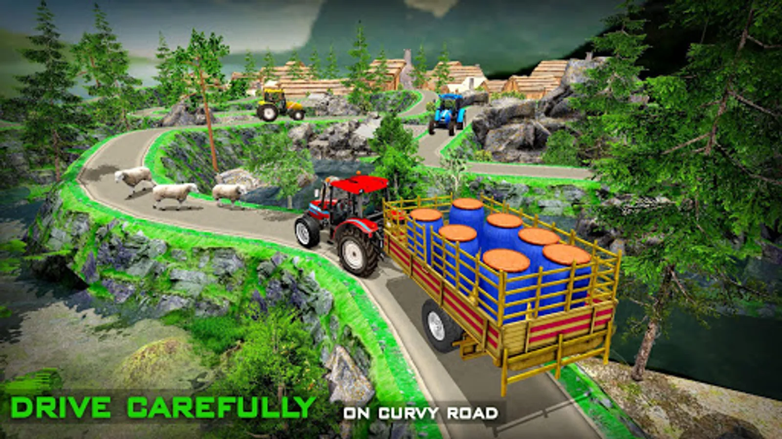 - Loaded Tractor Trolley drive carefully on Risky and impossible 3D tracks