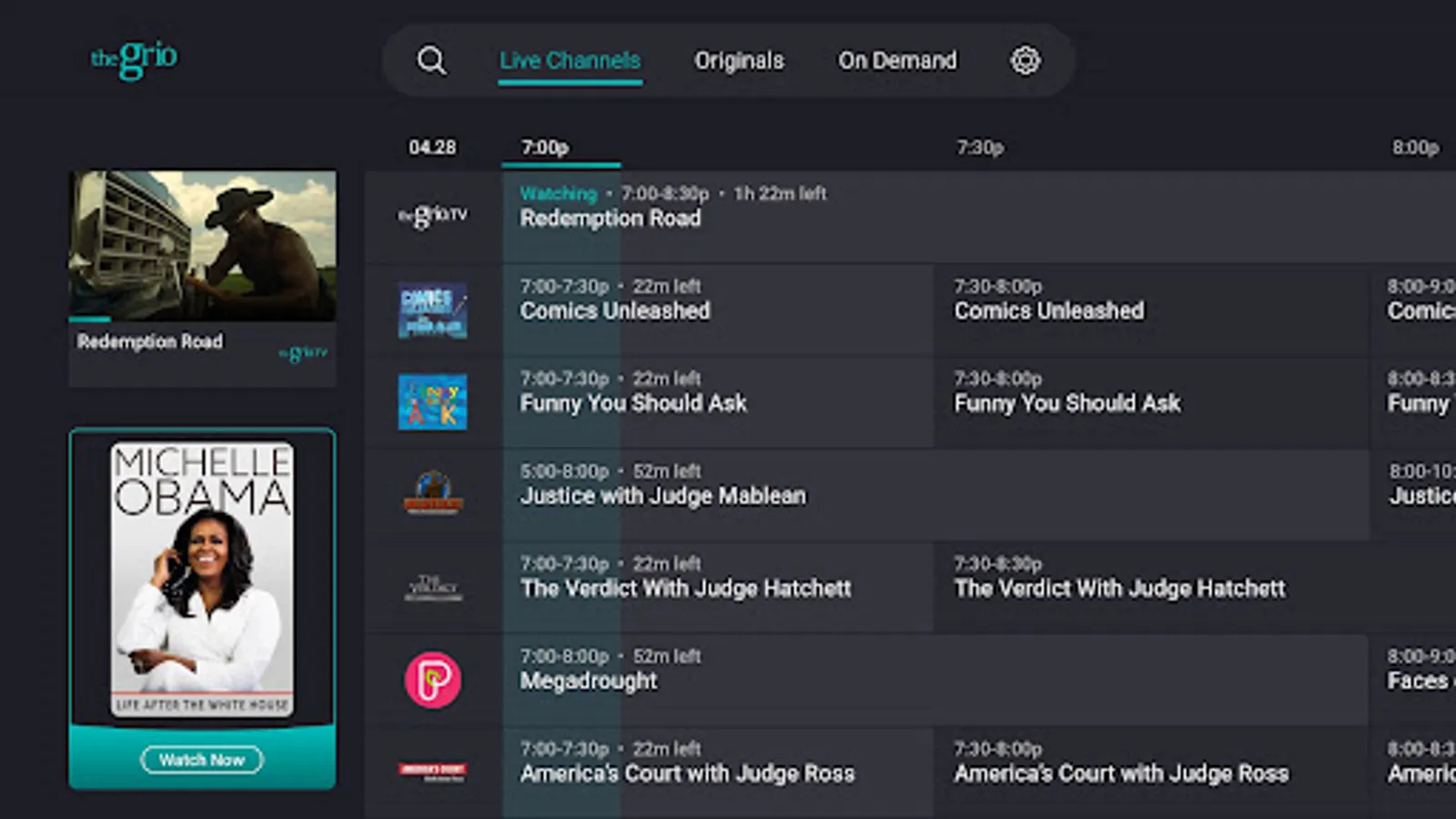Where Black America watches free TV! This is a free premium network bringing you award winning movies, contemporary comedy and classic TV shows focused on the African American community. Delivering compelling stories and perspectives through cutting edge news reports and in-depth interviews. (https://www.thegrio.com)