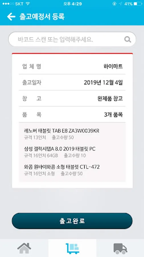 ○ Processing incoming and outgoing goods based on incoming and outgoing data