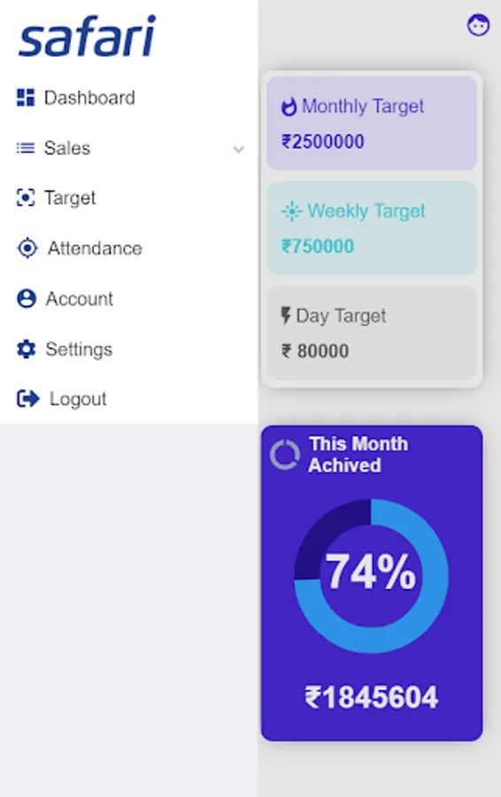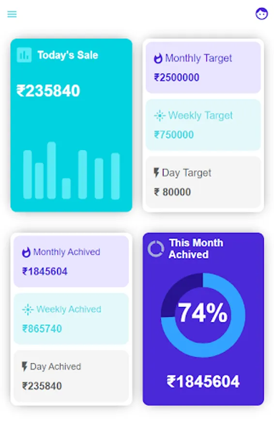 2. Showing Monthly/ Weekly /Daily target with till date sales.