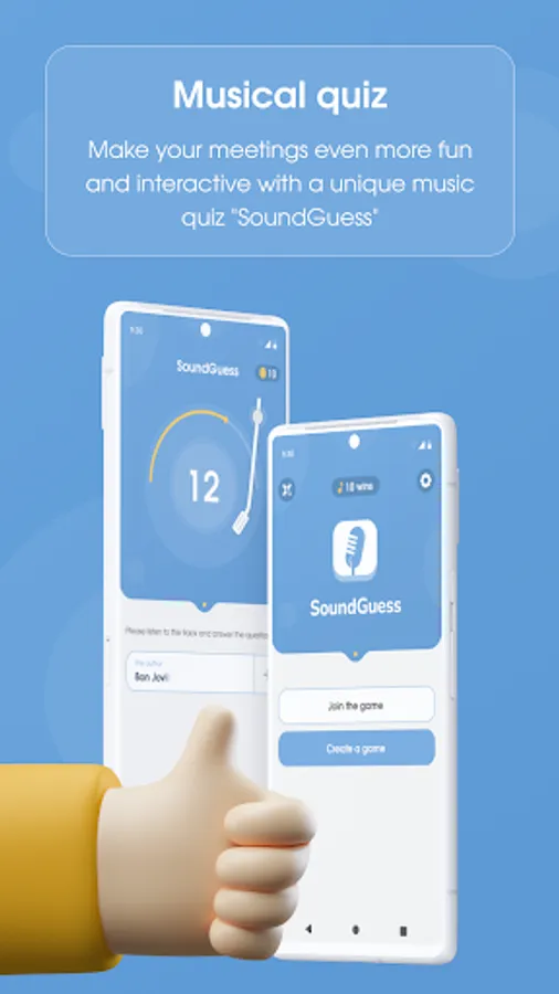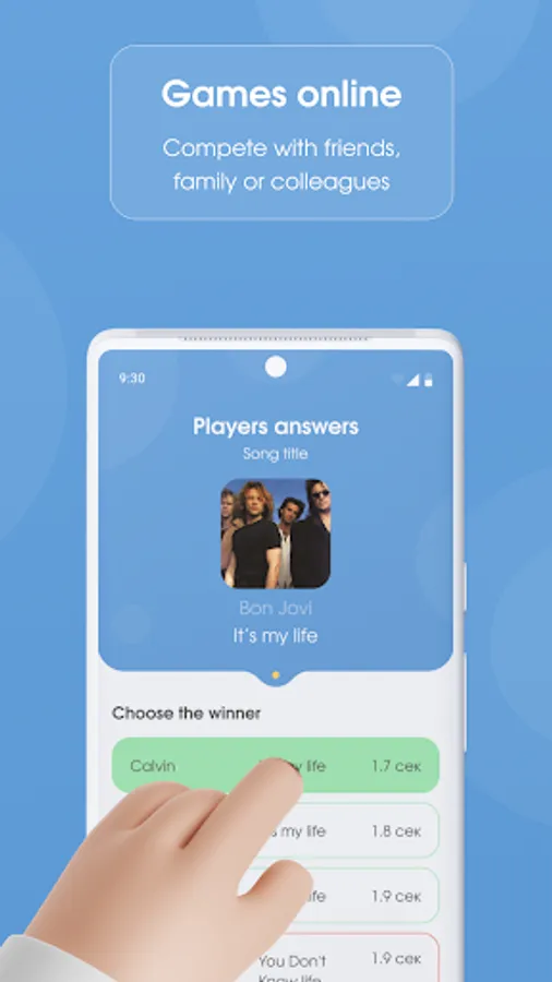 The player is given 30 seconds to guess the song. The faster he guesses, the higher the probability that the host of the game will choose his answer. The winner will be the one who scores the most points by the end of the competition.